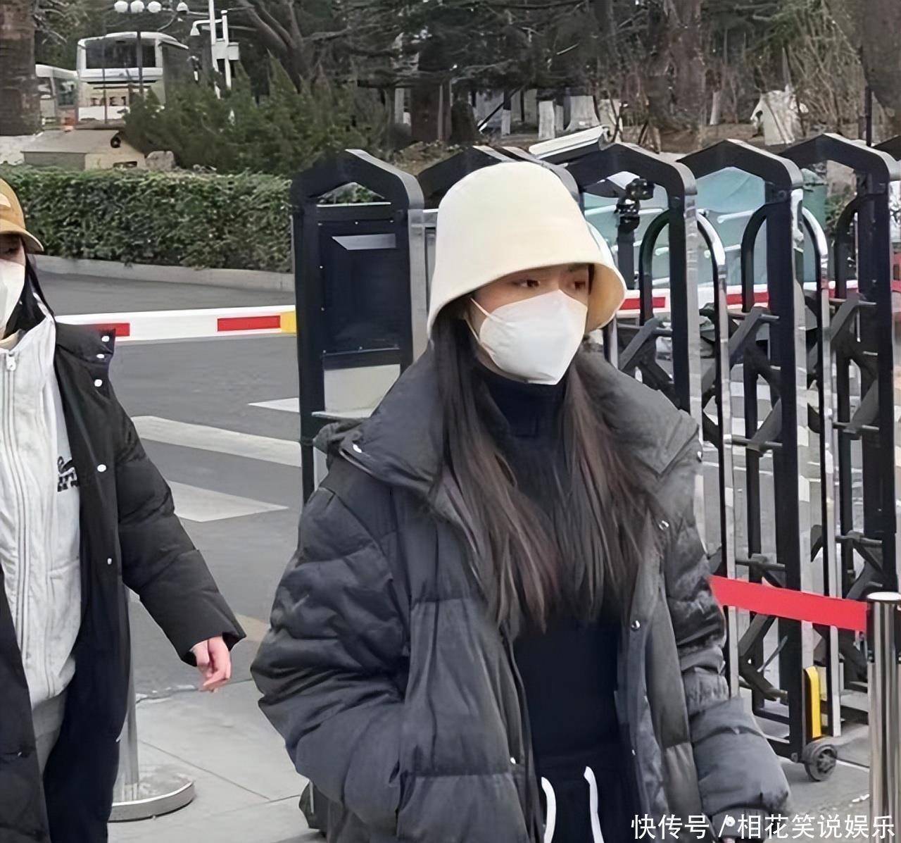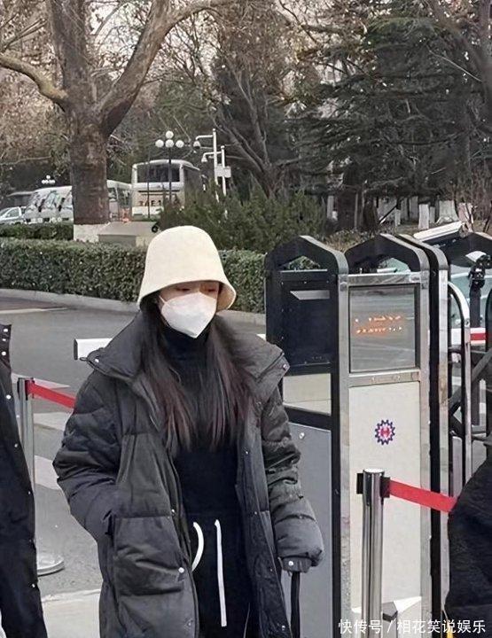 赵今麦春晚彩排饭拍,羽绒服内搭毛衣配阔腿裤,全黑搭配甜酷利落